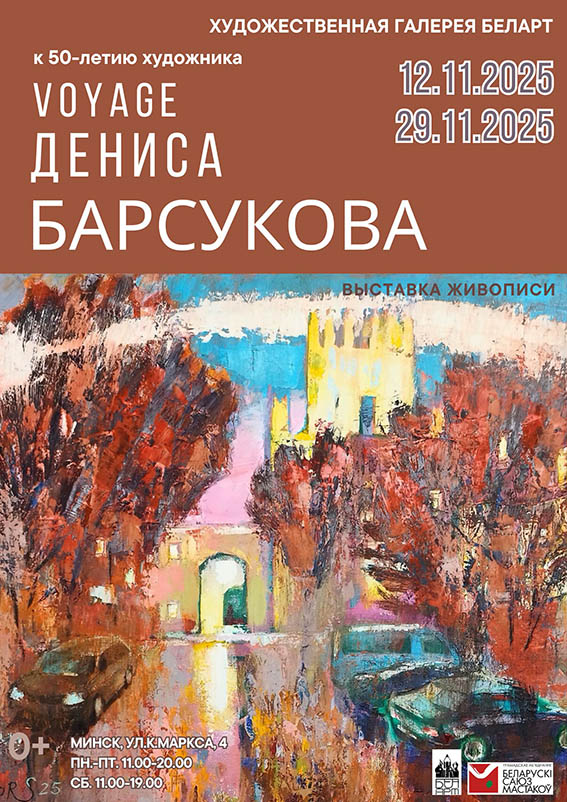 12 ноября (среда) в 18.00 в выставочном зале «Художественной галереи Беларт» состоится торжественное открытие персональной юбилейной выставки Дениса Барсукова , приуроченной к 50-летию художника.