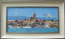 Вид на Альгеро с моря. Вечереет.