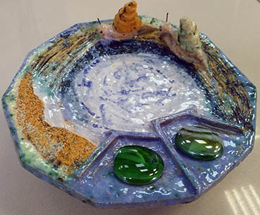 Техника исполнения: шамот, глазури, стекло